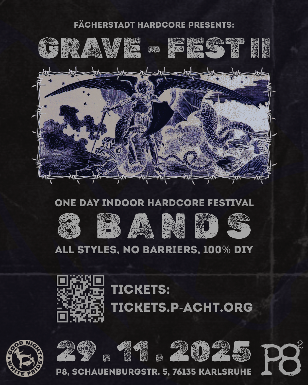 Das zweite GRAVE-FEST mit acht der spannendsten Bands der hiesigen Hardcore-Szene am 29. November 2025 im P8² Karlsruhe.