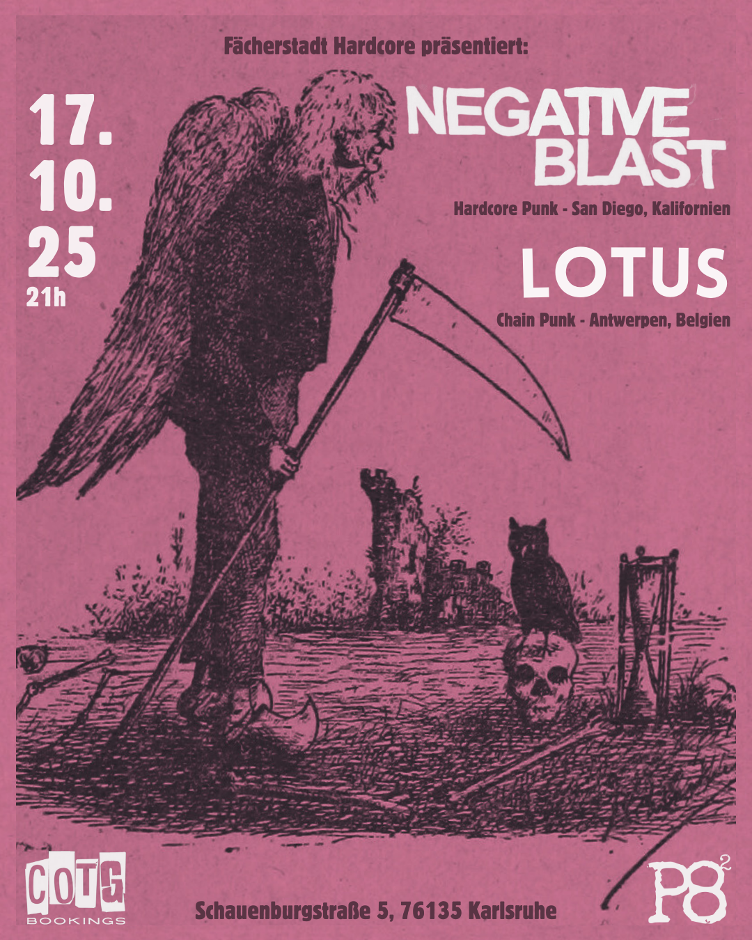 NEGATIVE BLAST haben's endlich über den großen Teich geschafft. Die erste Europa-Tour der Kalifornier macht Halt im P8² und entlädt sich als wilde, hall-getriebene Mischung aus Hardcore und Punk. Die Band aus San Diego besteht aus Mitglieder von Bands wie Lewd Acts, Hour Of The Wolf und Hot Snakes und ist quasi ein Produkt der Pandemie. Im November erscheint bereits der zweite Longplayer "Destroy Myself for Fun", einen Vorgeschmack gibt die vorab veröffentlichte Single "Denial".